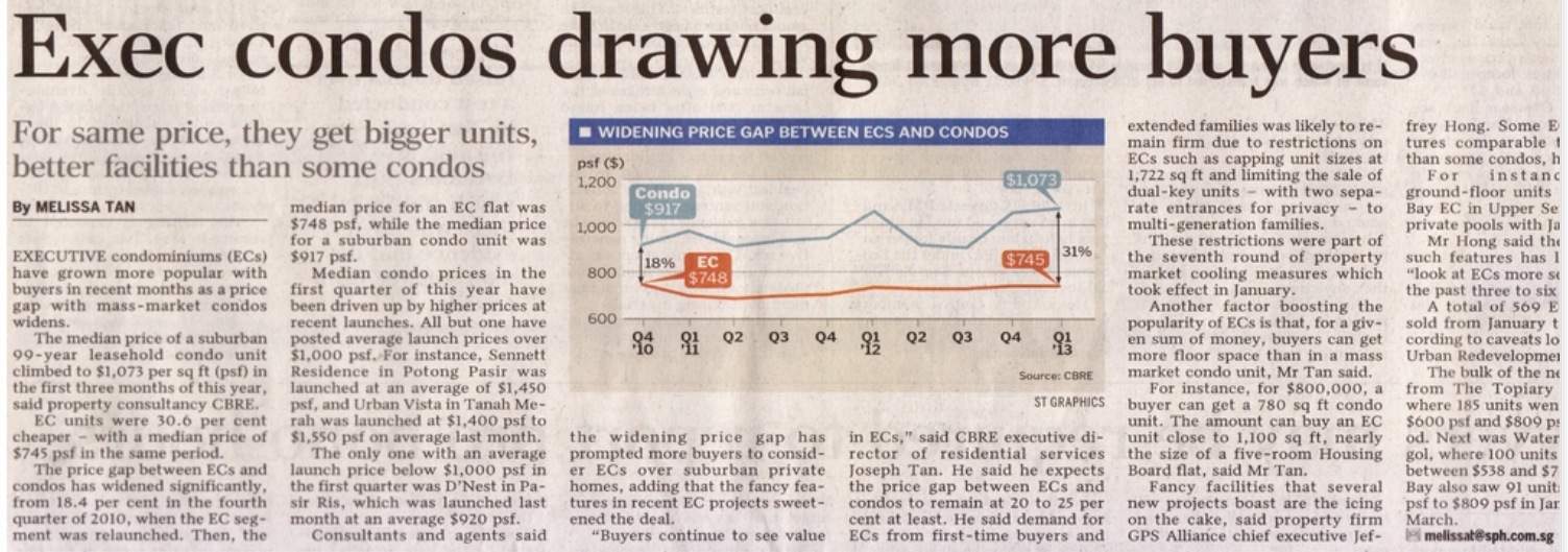 But one segment of the market still sizzles: executive condominiums (ECs), which have Housing Board-style ownership restrictions but all the facilities of private condominiums.